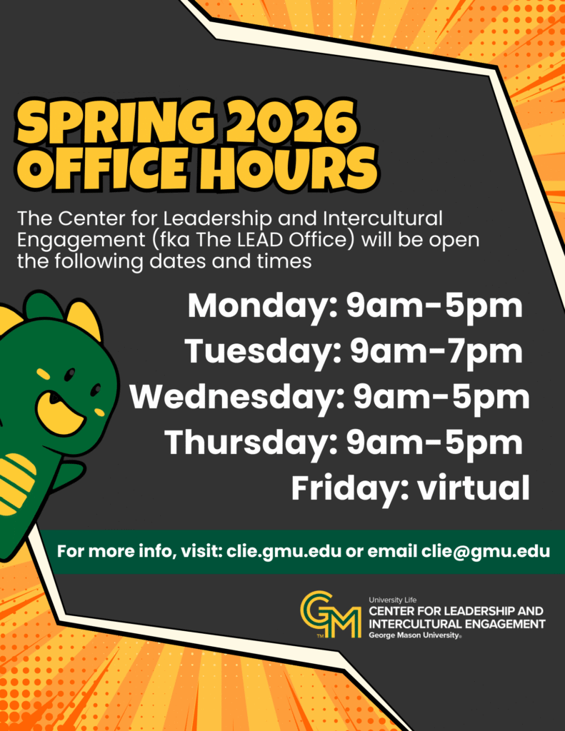 We are excited to announce that the Center for Culture, Equity, and Empowerment (CCEE) and the Leadership Education and Development Office (LEAD) have merged to form the Center for Leadership and Intercultural Engagement. Merging the expertise and passion of two departments is no small task, but our staff is deeply committed to the educational and support services that we offer to the Mason community. We are working diligently to ensure a seamless transition and to evolve our outreach efforts, programming, and services. We ask for your continued support, flexibility, and trust as we embark on this new chapter together.
