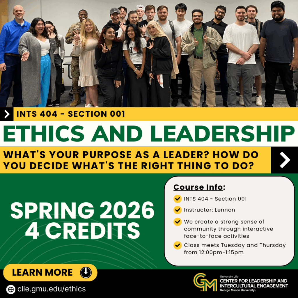 For more information about this Ethics and Leadership course contact Dr. Nick Lennon, Director of the Center for Leadership and Intercultural Engagement at [email protected]. For more information about the Leadership Concentration or Minor contact Dr. Julie Owen at [email protected]